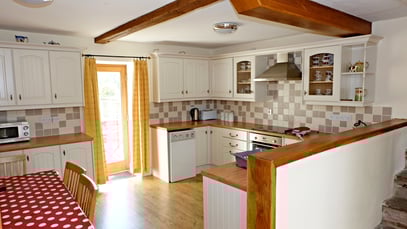 Inside the large attractive kitchen has an electric cooker, microwave, dishwasher, fridge, a freezer and a washing machine and a large country dining table and chairs for family get togethers. There is also a downstairs cloakroom with handbasin and toilet. In the living area there is a plenty of room with comfortable sofas, SKY, TV and DVD. Patio doors lead out of the kitchen to the lawned garden, for outside dining whilst taking in the breathtaking views.